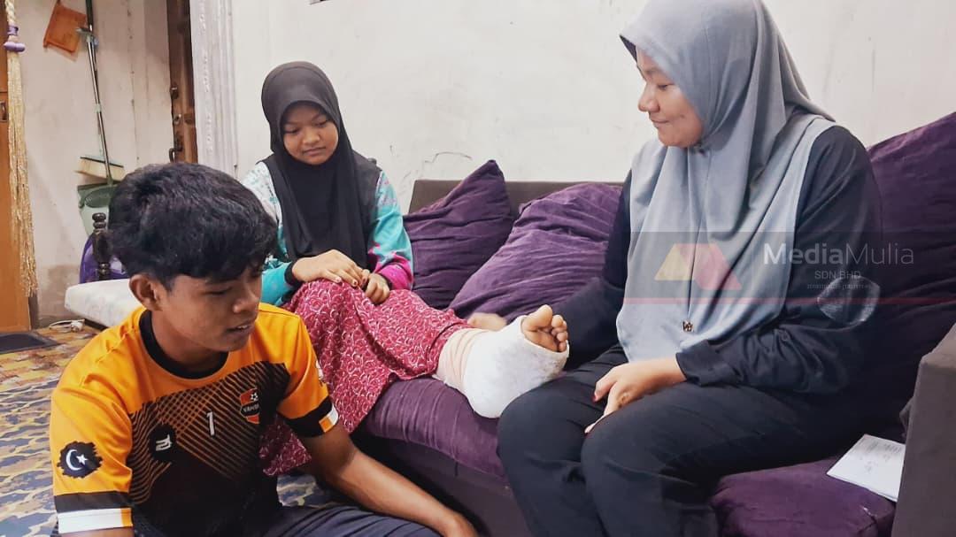 “Kami terus diuji apabila anak bongsu, Nur Alia Batrisya, 12, patah kaki kiri selepas terjatuh ketika bermain bola jaring di sekolah pada akhir bulan lalu.