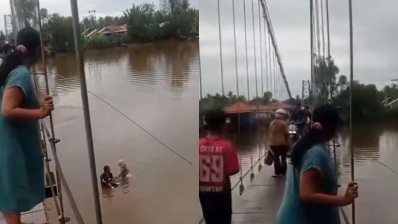 Rakaman video kejadian yang dimuat naik di platform Instagram oleh akaun @beritainformasikal menunjukkan seorang lelaki sedang mendukung bayinya sambil berjalan ke tepi sungai.
