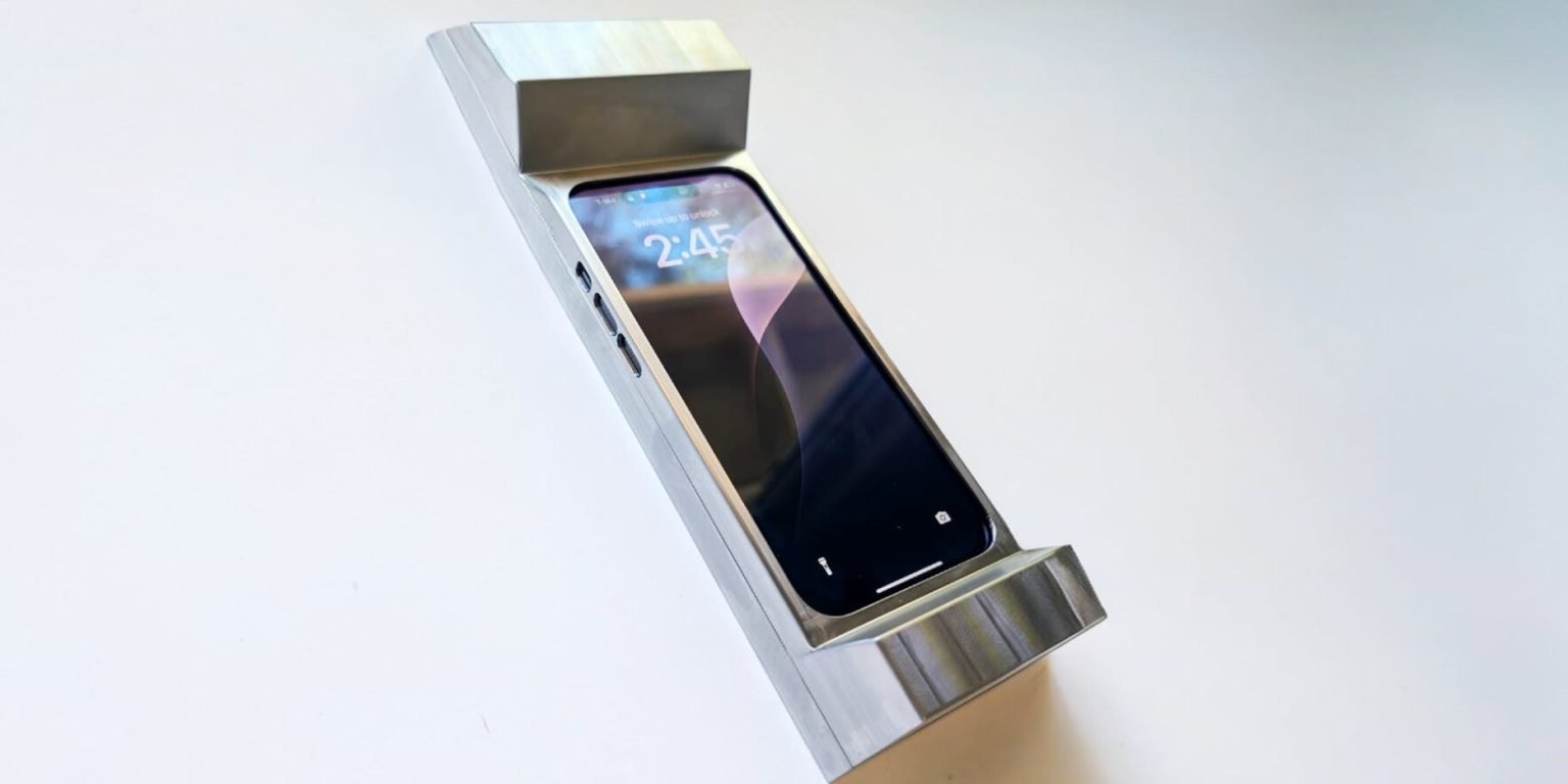 Sarung keluli tahan karat itu lebih berat daripada sebuah komputer riba MacBook Pro. Ia sengaja dibina untuk menyukarkan penggunaan peranti mudah alih.